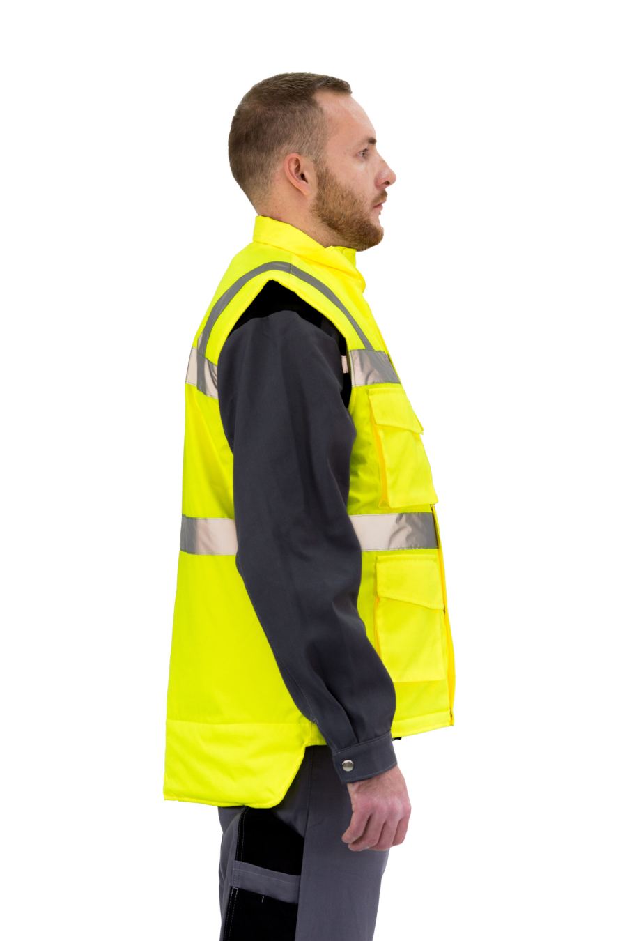 Radni prsluk iz PremiWork asortimana odjeće za zaštitu na radu namijenjen za zaštitu od vjetra i hladnoće. Radni prsluk je funkcionalna odjeća koja se također može koristiti za slobodno vrijeme i svakodnevnu upotrebu. Bitna karakteristika koju posjeduju prsluci iz naše ponude jeste santfrost produžetak za leđa koji pruža dodatnu zaštitu pri obavljanju radnih zadataka. Također ovaj model prsluka posjeduje karakteristiku visoke vidljivosti. Oprema za rad na niskim temperaturama mora biti udobna i fleksibilna. Ovaj model posjeduju četiri džepa sa prednje strane, kopčanje na rajfešlus sa dodatnim kopčanjem na dugmad. Boja je po želji i izboru kupca, dok veličine dolaze u standardnim brojevima.