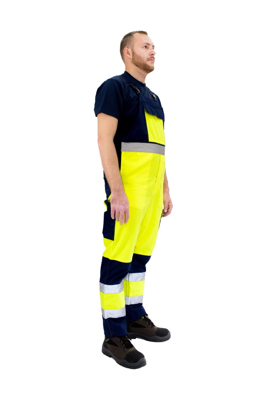 Ovaj model hlača na tregere usklađen je sa standardom boja za rad na visoko i nisko gradnji. Ovaj asortiman odjeće karakteriše moderan izgled. Materijal je izdržljiv i vrlo ugodan za nošenje a prostrani džepovi su idealni za alat i vrijedne stvari. Prednosti ovog kombinezona iz PremiWork kolekcije kombinuje praktičan dizajn i boje sa reflektirajućim trakama što pruža dodatnu uočljivot napolju. Visoka vidljivost žuta sa sivim kontrastom kao jedna od glavnih karakteristika ovog dizajna. Materijali su najvišeg kvaliteta tako da će odjeća zadržati svjež izgled i poslije mnogo pranja. Ovi modeli su idelano rješenje za radnu odjeću velikog broja profesionalaca.